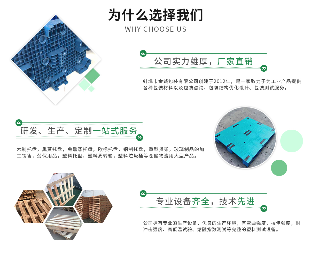 蚌埠市金誠包裝有限公司創(chuàng)建于2012年,是一家致力于為工業(yè)產(chǎn)品提供各種包裝材料以及包裝咨詢、包裝結(jié)構(gòu)優(yōu)化設(shè)計、包裝測試其中包括木制托盤,熏蒸托盤,免熏蒸托盤,歐標托盤,鋼制托盤,重型貨架,玻璃制品的加工銷售,勞保用品...